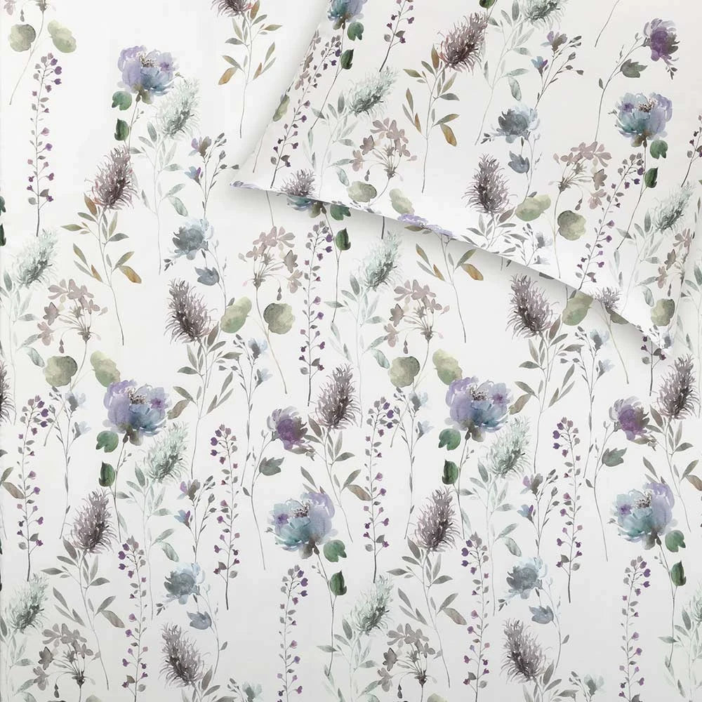Zanurz sen w delikatnej, malarskiej poezji natury. Pościel Carla w odcieniu szałwii zdobią subtelne, akwarelowe motywy dzikich kwiatów — filigranowe liście i kwiaty w tonacji fioletu, błękitu, beżu i delikatnej zieleni unoszą się lekko nad jasnym tłem, tworząc w sypialni spokojną, naturalną aurę. To design, który oddycha — lekki, pełen detali, jak wczesny poranek na letniej łące. Idealny dla tych, którzy kochają sen otulony delikatnością i pięknem natury.