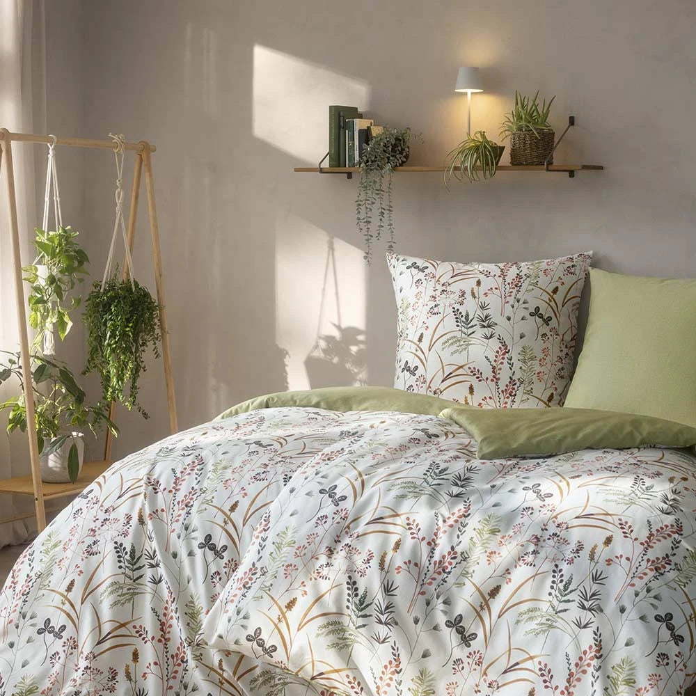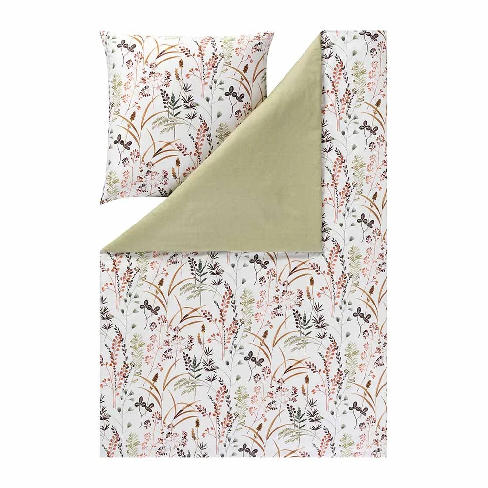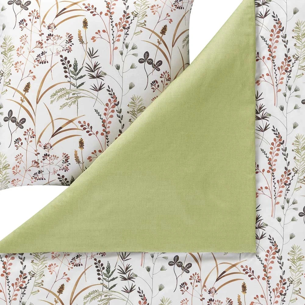 Zanurz się w delikatny świat natury, który przywozi do Twojego sypialni spokój i harmonię. Pościel Maria w odcieniu Lima zdobią subtelne ilustracje dzikich kwiatów, traw i gałązek – w ciepłych tonacjach brązu, koralu, czerni i zieleni, na jasnym, delikatnym tle. Odwróć i… zmień nastrój! Druga strona w spokojnym, jednolitym limonkowym odcieniu pozwala odświeżyć wystrój sypialni jednym ruchem – idealne rozwiązanie dla tych, którzy kochają zmiany bez wysiłku.