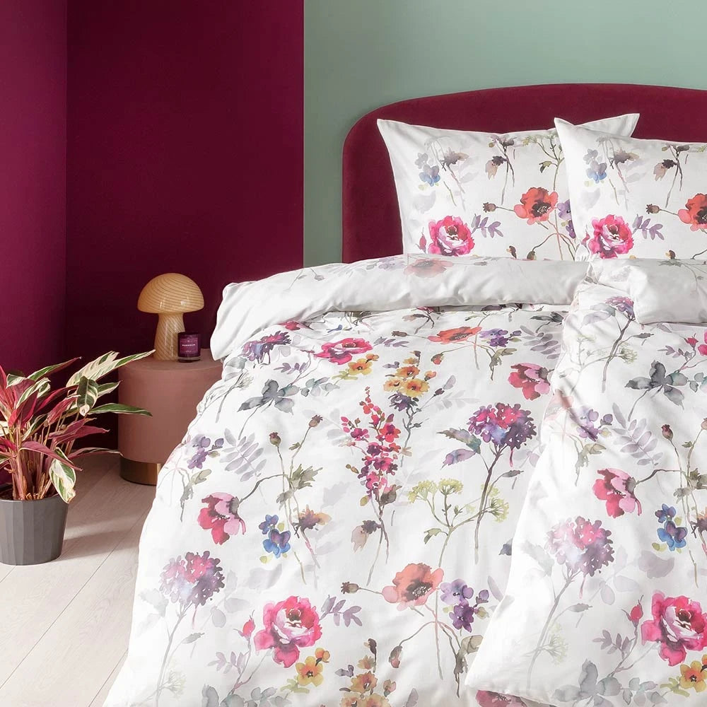 Hailey to akwarelna opowieść o świetle i lekkości. Pastelowe róże, błękity, lila, świeża zieleń i odrobina ciepłej żółci miękko rozlewają się na jasnym, rozświetlającym tle, tworząc efekt „letniej łąki” bez przesytu. Drobny, dopracowany rysunek dodaje wnętrzu świeżości i miękko otula kadr romantyczną elegancją. Zestaw ją z ecru, jasnym drewnem i lnianymi fakturami albo przełam pudrowym różem czy szałwią — zawsze będzie wyglądać lekko i szlachetnie.