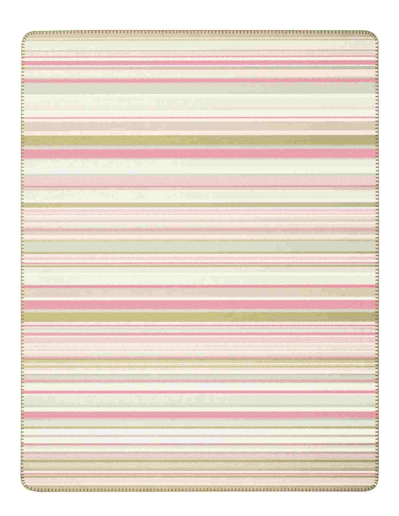Charakteryzuje się subtelnym połączeniem pastelowych barw w odcieniach różu i zieleni, tworzących harmonijne pasy poziome. Jego miękka faktura i przyjemna kolorystyka sprawiają, że jest on przyjemnym uzupełnieniem każdego wnętrza, zapewniając ciepło oraz komfort użytkowania.