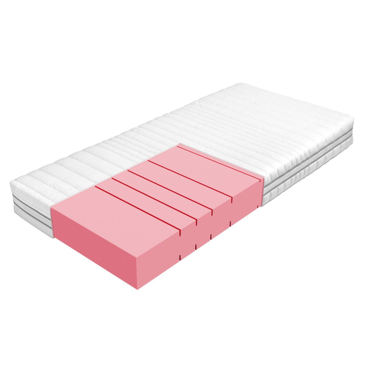 Podłużne oraz poprzeczne nacięcia pianki wysokoelastycznej zapewniają idealne dopasowanie do kształtu ciała. Materac odporny na odkształcenia. Odpowiedni dla osób o większej wadze lub preferujących twardsze materace.