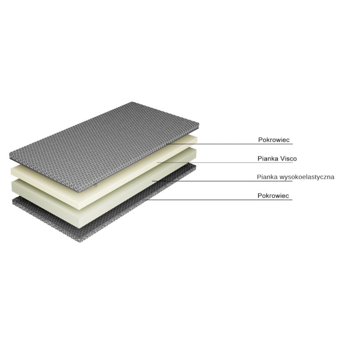 - Wysoki komfort oraz przyjemną lekkość zawdzięczamy warstwie pianki termoelastycznej (7 cm), która dostosowuje się do kształtu ciała pod wpływem temperatury.