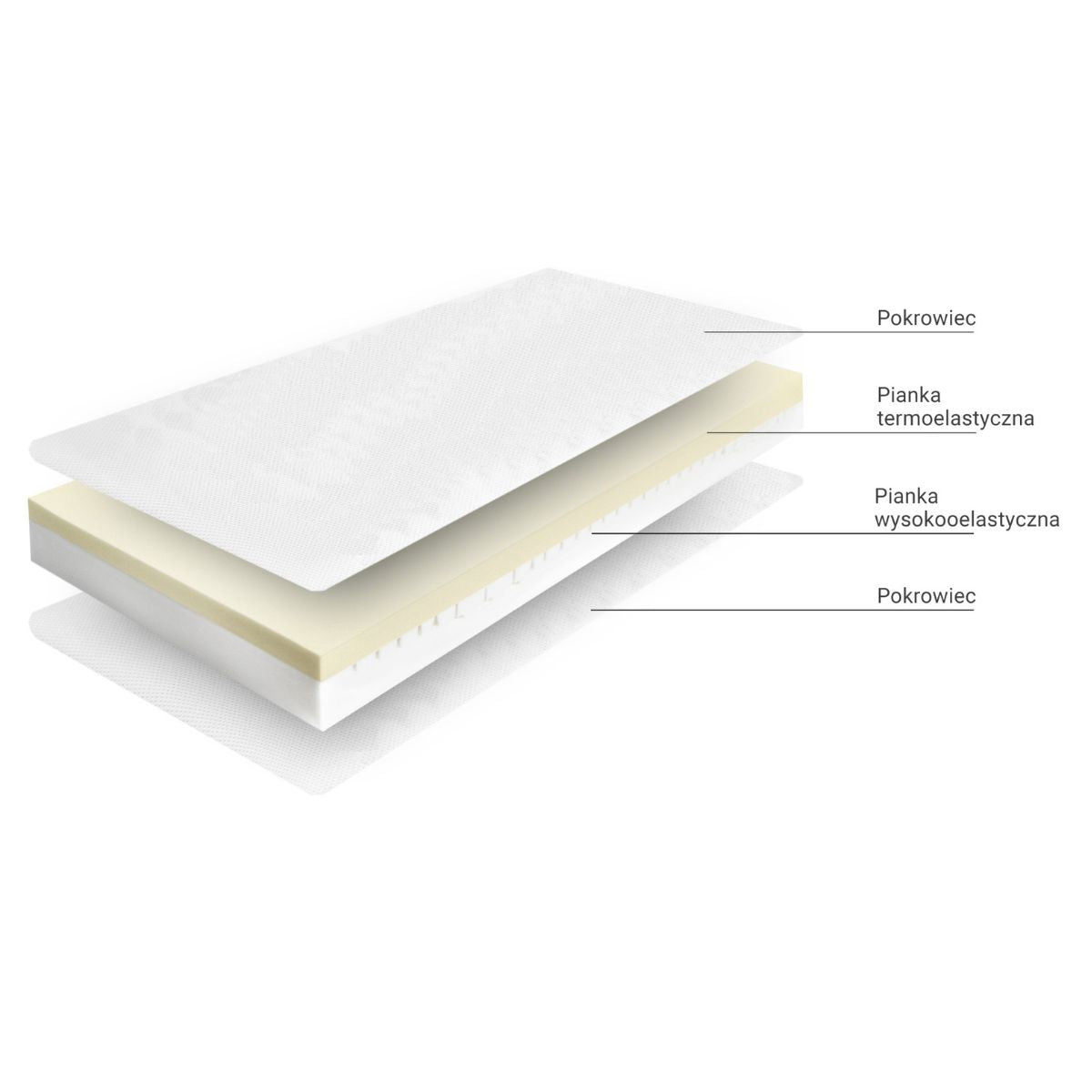 - 5 cm pianki termoelastycznej - pianka dostosowuje się do kształtu ciała pod wpływem ciepła, nacisku i temperatury.