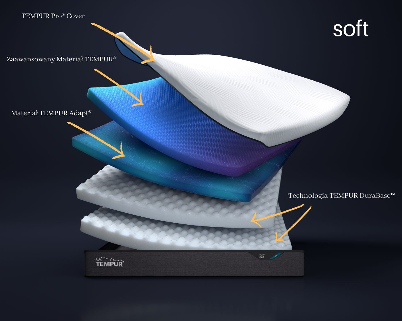 Kolekcja TEMPUR Pro® zapewnia wyższy poziom komfortu i podparcia. Za pomocą zaawansowanego materiału TEMPUR®, redukuje 20% więcej nacisku, pochłania więcej energii ruchu i lepiej się dopasowuje. Miliardy ultra wrażliwych komórek wewnątrz reagują na Twoją wagę, kształt i temperaturę, dopasowując się do każdego centymetra Twojego ciała. Dla najwyższej równowagi komfortu i podparcia, dzięki której możesz się cieszyć prawdziwym, spokojnym snem. Z kolekcją TEMPUR Pro® nadeszła przyszłość snu.