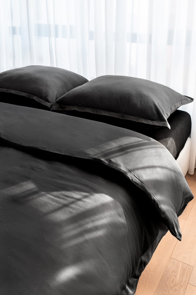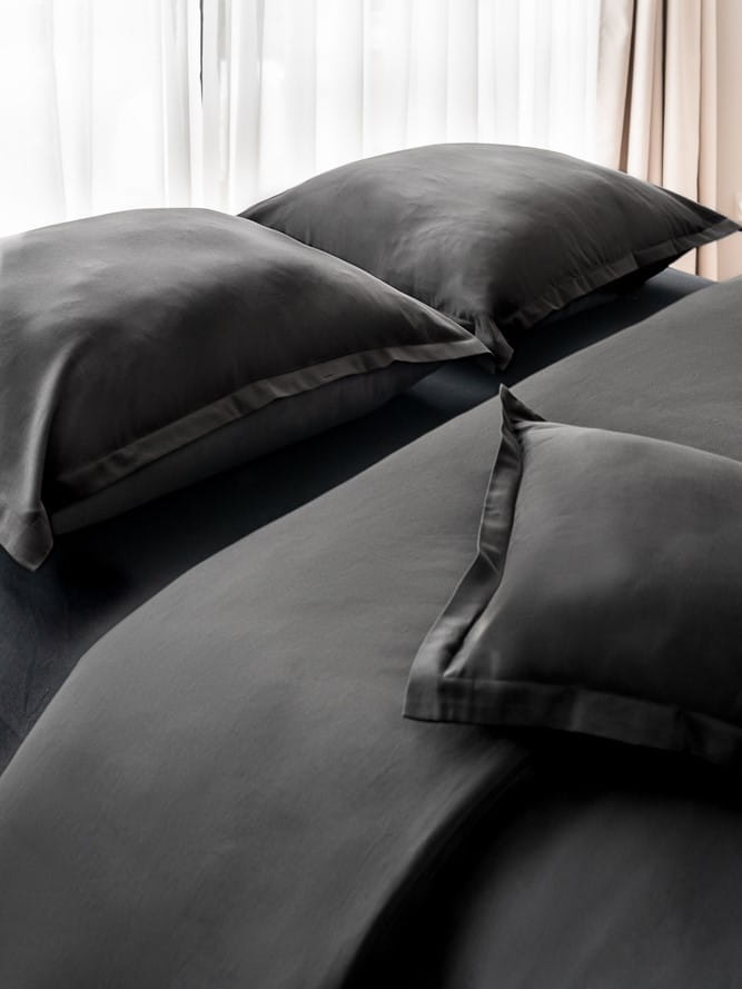 Pościel w kolorze głębokiego antracytu produkowany jest z najlepszej jakości certyfikowanej bawełny o splocie satynowym, poddanej dodatkowemu procesowi zmiękczania. Pościel jest niesamowicie miękka i przyjemna dla skóry. Luksusowa pościel najwyższej jakości ukoi nasze ciało i zmysły po całym dniu pełnym wrażeń.